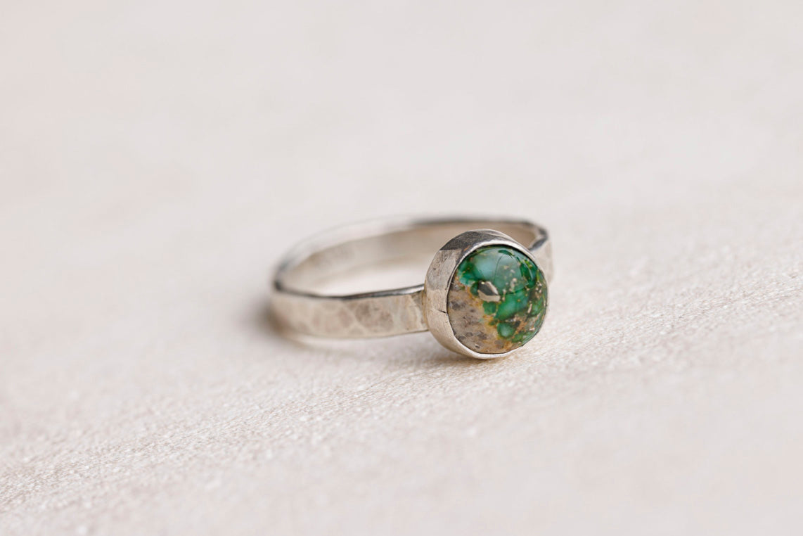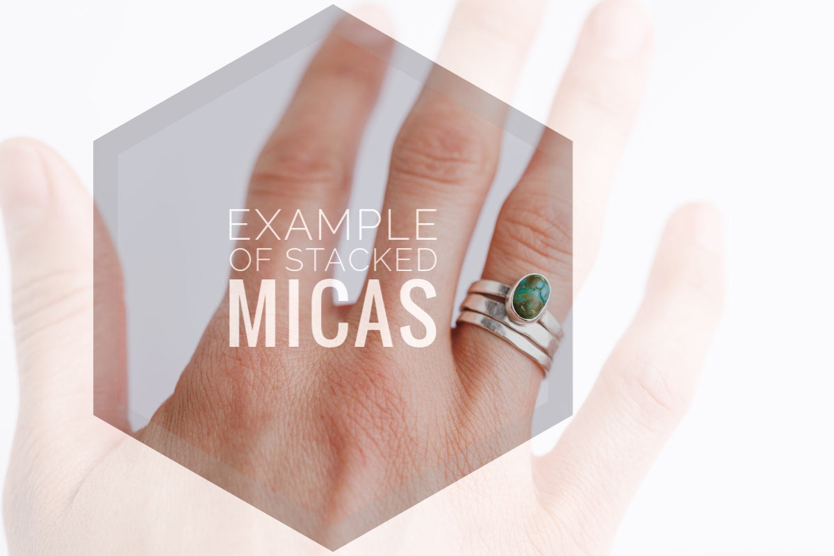 Mica is a series of stackable rings, easily paired with silver bands of hammered or smooth textures.