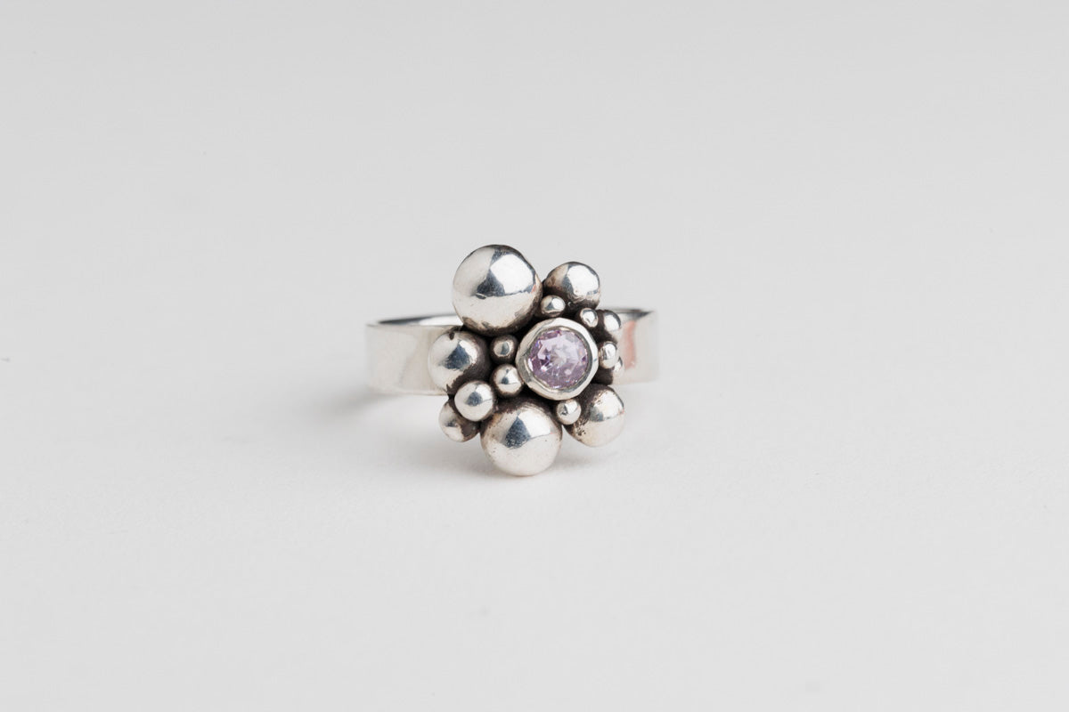Argentium silver .935, Double culet lavender cubic zirconia